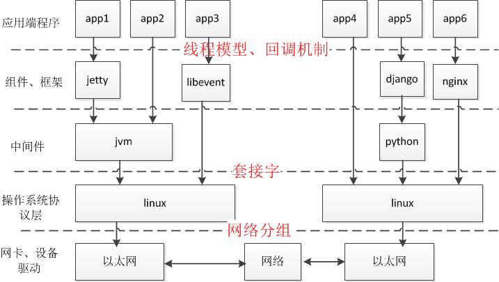 1、如果基于通用组件编程,关注点多是在组件如何封装套接字编程细节。为了使应用程序不感知套接字层,这些组件往往是通过各种回调机制来向应用层代码提供网络服务,通常,出于为应用层提供更高的开发效率,组件都大量使用了线程(Nginx等是个例外),当然,使用了线程后往往可以降低代码复杂度。但多线程引入的并发解决机制还是需要重点关注的,特别是锁的使用。另外,使用多线程意味着把应用层的代码复杂度扔给了操作系统,大吞吐量时,需要关注多线程给操作系统内核带来的性能损耗。