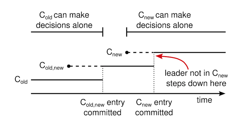 - 而C(old,new)一旦进入commited提交状态,此时若leader宕机重新选举,则要求必须是具备C(old,new)的candidate才能被选为新leader;