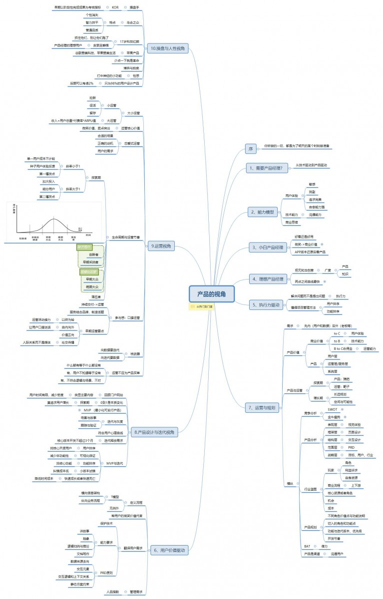 这其实要求我们多蓄点势能再出发,到达终点的时间会更短些! 本文其实是笔者最近看完后显慧的《产品的视角:从热门到门道》一书有感而作。笔者从资深后端架构师,跨度为创业公司的联合创始人,翻完这本薄薄的小书后,豁然发现这两年自己踩了无数的坑,于是写下本文给团队的研发小伙伴们看看,如何快速提升自己的产品思维,也希望能给广大的互联网从业者们以启发。最后附上我的读书笔记思维导图供大家快速查阅。特别欣赏这本书序言里的一句话:你所做的一切,都是为了明天的某个时刻做准备!所以,程序员们,学点与技术无关的知识吧!