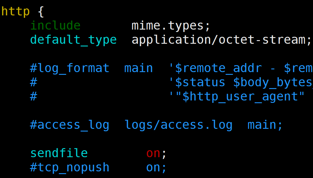 - include指令可以将其他配置文件载入到nginx.conf中,这样可以提升配置的可维护性。例如includemime.types;语句,就将Content-Type与文件后缀名的映射关系,放在了独立的mime.types文件中,降低了耦合性。