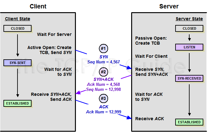 TCP层的错误主要体现在三次握手与数据传输中,是否能够及时接收到对方返回的ACK确认帧。由于TCP协议实现了有序字节流的可靠传输,所以HTTP、gRPC、CGI、memcached等协议都是基于TCP实现的。因此,Nginx向上游转发请求前,需要先通过三次握手建立TCP连接。关于3次握手的流程,你可以参见下图,这里不再详述。