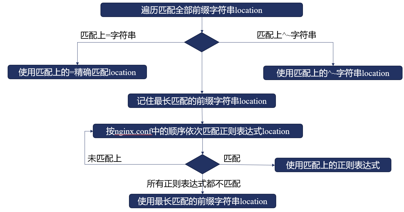 - 先对前缀location执行最长前缀匹配
